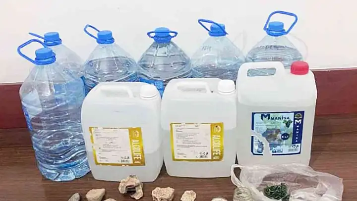 Yapılan aramada, bir miktar kurutulmuş esrar, bir miktar kenevir tohumu, 42 litre etil alkol ve 50 parça eski döneme ait olduğu değerlendirilen taş parçaları ele geçirildi. Olayla ilgili adli işlemlere başlandığı açıklandı.