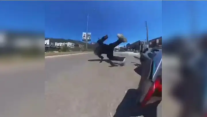Muğla'nın Bodrum ilçesinde kontrolsüz şekilde şerit değiştiren otomobile motosiklet çarptı. Kazada devrilen motosikletin sürücüsü yaralanırken, kaza anı motosikletteki aksiyon kamerasına yansıdı.