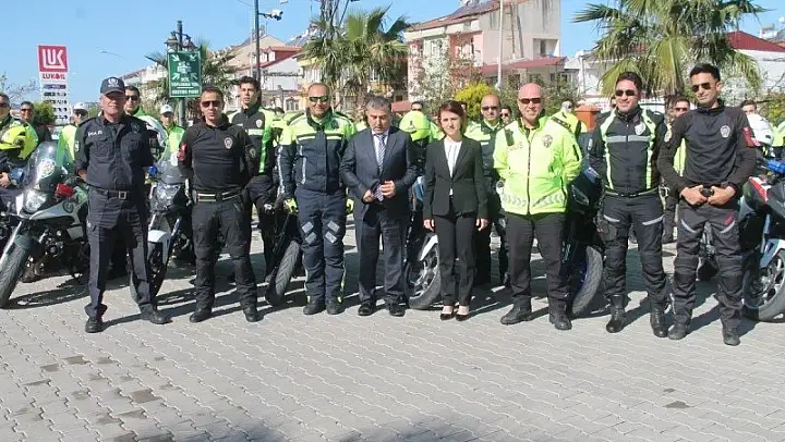 Fethiye'de 10 Şubat tarihinde başlayan ve önceki gün sona eren motosikletli trafik timleri sürüş teknikleri kursu tamamlandı. Kursu başarıyla bitiren 25 kursiyer sertifikalarını törenle aldı. Törene Fethiye Kaymakamı Muzaffer Şahiner, Muğla Trafik Şube Müdürü Raşit Tosun, Fethiye İlçe Emniyet Müdür Vekili Serpil Çalışkan, Emniyet Müdür Yardımcısı Ferhat Demiriz, Trafik Tescil Büro Amiri Mehmet Zeybek ile kursiyer polis memurları katıldı. Fethiye İlçe Emniyet Müdürlüğünde yapılan törende saygı duruşunda bulunulup İstiklal Marşımız söylendi. Törende kursu 1.'likle bitiren Bodrum'da görevli polis memuru Emrah Dugan'a plaketi ve sertifikasını Fethiye Kaymakamı Muzaffer Şahiner sunarken, 2.'likle tamamlayan polis memuru Mehmet Efe Beyazıt'a Fethiye İlçe Emniyet Müdür vekili Serpil Çalışkan, 3.'lükle tamamlayan polis memuru Fuat Kılınç'a da Emniyet Müdür Yardımcısı Ferhat Demiriz sundular.
