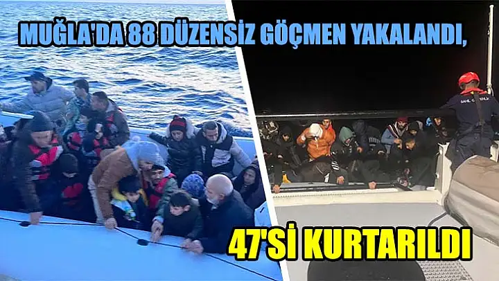 Muğla'nın Bodrum ilçesi açıklarında 88 düzensiz göçmen yakalandı, 47 göçmen kurtarıldı.