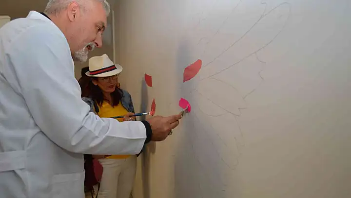 MUĞLA'DA MEME KANSERİ FARKINDALIK AYINDA MAMOGRAFİ ODASININ DUVARLARI BOYANDI