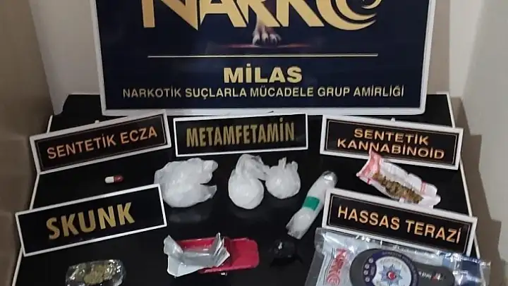 Edinilen bilgiye göre, piyasaya uyuşturucu madde sürüleceği bilgisinin edinmesinin ardından Milas Cumhuriyet Başsavcılığı koordinesinde, Muğla İl Emniyet Müdürlüğü Narkotik Suçlarla Mücadele Şubesi ekipleri tarafından operasyon düzenlendi. Milas-Bodrum yolunda takibe alınarak durdurulan otomobilde narkotik köpeği Joshua ile arama yapıldı. Aramada skunk, metamfetamin, sentetik ecza, sentetik kannabinoid, hassas terazi ve 117 bin lira ele geçirildi. Gözaltına alınan ve emniyetteki işlemlerinin ardından adliyeye sevk edilen M.C. (42), H.Z.Ç. (31), G.B. (29) ile R.A. (31) tutuklanarak cezaevine gönderildi.