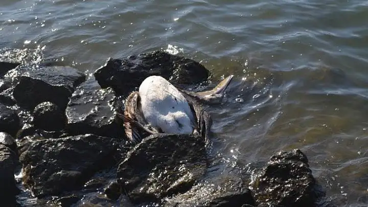 Fethiye'de sahil bandında kıyıya vuran ölü pelikan merak konusu oldu. Kıyıda balık tutanların farkında vardığı ölü pelikanın, akıntıyla sürüklenerek kıyıya vurduğu tahmin ediliyor.
