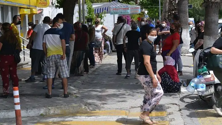 Tam kapanma nedeniyle sosyal yardım programı adı altında vatandaşlara verilen 1100 tl tutarındaki paralar PTT ve ilgili banka şubelerine yatırılınca vatandaşlar uzun kuyruklar oluşturdu. Fethiye'de PTT merkez şube önünde toplanan vatandaşlar, 'Keşke diğer şubeler açık olsaydı burada fazla insan kalabalığı olmazdı' diye konuştular.