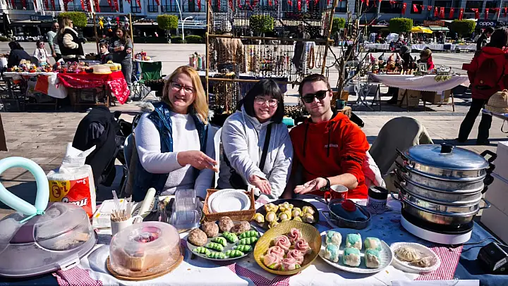 Eşi Mustafa Gökay Akdeniz tarafından yapılan tercümede konuşan Yajuan Jiang, 'Çin mantıları yapıyorum. Hepsi el yapımı. Farklı renk ve şekillerde yapıyorum. Hamurları şekillendiriyorum. Bezelye, köfte, çiçek gibi ürünlere benziyorlar ama hepsi hamur işi mantı. Ekmek gibi. 3 yıldır Fethiye'de yaşıyoruz ve burası çok güzel bir yer.' dedi.