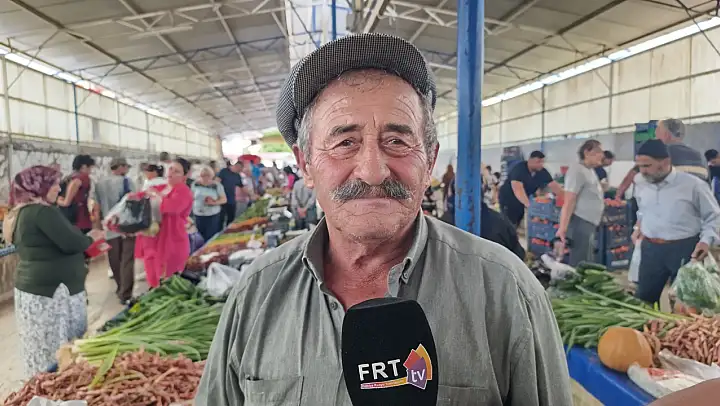 Şevki Uçak, 'Bugün de Salı Pazarında bayram yoğunluğu var. Satışlardan çok memnunum, çok güzel. Allah'a şükürler olsun, bundan iyi olamaz. Fiyatlarımızda çok güzel. Patlıcan 20 TL, Salatalık 20 TL. bu kadarı yetiyor. Allah bereket versin. Bu işe nankörlük etmem. 'Pahalı' diyen vatandaşlar var. Pahalı diyenlere bir de 'Bedava' desen de aynı. Ama pahalı mallar da var. Mesela fasulye 80 TL mesela Barbunya 100 TL ama Patlıcan 20 TL, salatalık 20 TL, elma 50–60 TL. Allah bereket etmesin ya…' dedi.