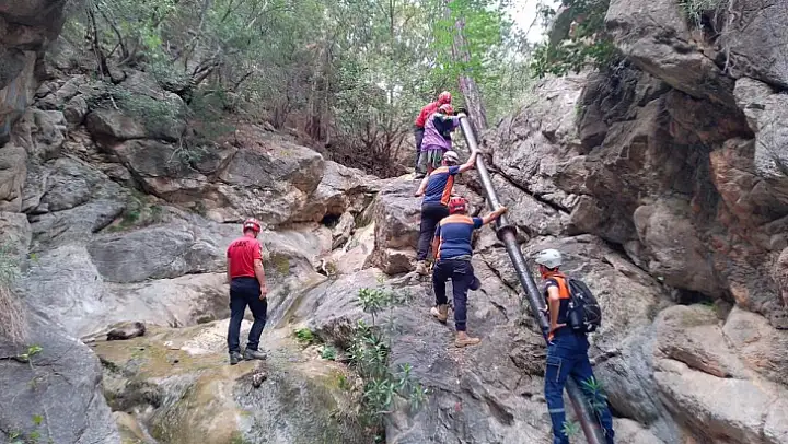 Muğla'nın Fethiye ilçesindeki, Kelebekler Vadisi'nde uçurumda mahsur kalan tatilciler Jandarma Arama Kurtarma (JAK) ve MAGAME ekipleri tarafından kurtarıldı.