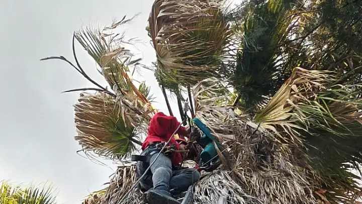 AKUT Fethiye Ekibi palmiye ağacındaki kediye ulaşmak için merdivene iki ağaçtan emniyet durumu aldı. Kedinin mahsur kaldığı ağaçta elektrikli ve el testeresi kullanarak budama yapıldığı belirtildi. Sevimli can dostumuz mahsur kaldığı yerden kurtarılarak operasyon sonlandırıldı.