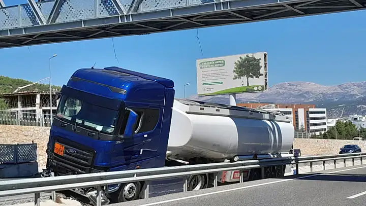 Sabah saatlerinde meydana gelen kazada sürücü yara almadan kurtulurken, yolun tek şeridi trafiğe kapatıldı. TIR'ın arkasındaki tankın tamamen akaryakıt dolu olması nedeniyle akaryakıtın boşaltılması yerine dorse yerinden çıkarılarak başka bir TIR tarafından çekilerek taşınacak. TIR'ın çarpmanın etkisi ile sol ön bölümünde hasar oluşurken, servise götürüleceği açıklandı.