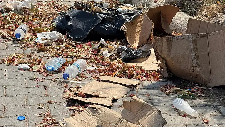 Muğla'nın Fethiye ilçesi Taşyaka Mahallesi, Trafik Eğitim Parkı'nın hemen karşısındaki yolun kenarına sabah saatlerinde bırakılan çöp yığını, mahalle sakinlerinin tepkisine neden oldu. Vatandaşlar, çöplerin cadde kenarına rastgele bırakıldığını belirterek çevre kirliliğine dikkat çekti. Yaz sıcağında kısa sürede etrafa kötü koku yayılmaya başlayan çöplerin konteynıra atılması konusunda dikkat çekiliyor.