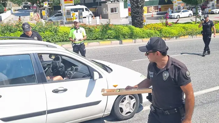 Muğla'nın Marmaris ilçesi Trafik Tescil Denetleme Şube Amirliği ekipleri ilçe girişindeki uygulama noktasında sürücülerin bayramlarını kutlayıp 'bu yolda sana çok güveniyoruz' broşürleri dağıtıp, kolonya ve çikolata ikram etti.