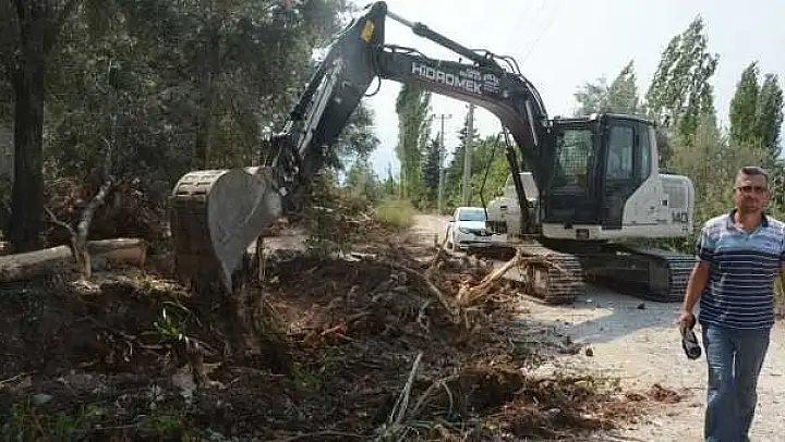 Yıllar önce açılan toprak yolun bozulan kısımları onarılırken, dar olan kısımları genişletiliyor, yol şarampolleri temizleniyor. Uzun ömürlü olması için filler malzemesi sıkıştırılacak yol, daha sonrada asfaltla kaplanacak
