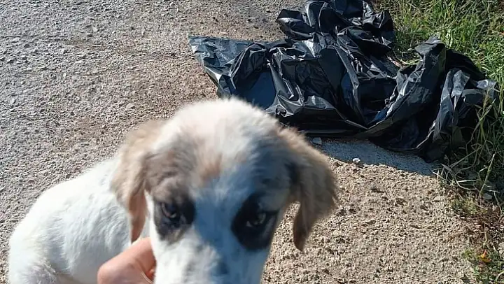 YAVRU KÖPEĞİ AĞZI BAĞLI POŞETE KOYUP YOL KENARINA ATMIŞLAR