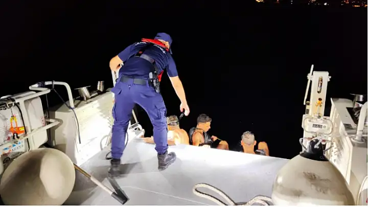 Muğla'nın Bodrum ilçesinden yüzerek İstanköy Adası'na geçmeye çalışan düzensiz göçmenler, Sahil Güvenlik ekipleri tarafından yakalandı.