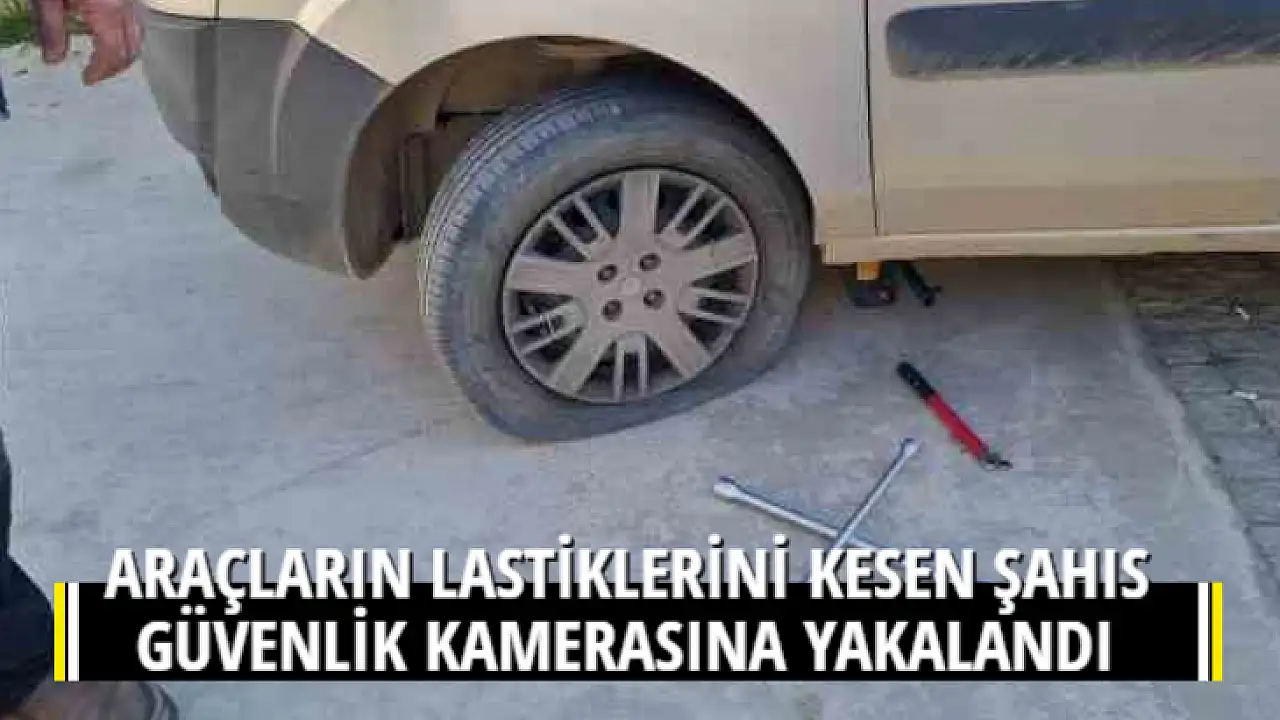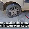 ARAÇLARIN LASTİKLERİNİ KESEN ŞAHIS, GÜVENLİK KAMERASINA YAKALANDI