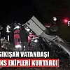 35 EFV 72 plakalı aracı ile seyir halinde olan Mehmet Demirtaş, direksiyon hakimiyetini kaybetmesi sonrası aracı takla attı. Ters dönen araç içinde sıkışan sürücünün kurtarılması için İtfaiye AKS ekipleri kesici ile gerçekleştirdikleri titiz çalışma sonrası araç içinde sıkışan Mehmet Demirtaş’ı sıkıştığı yerden kurtararak 112 ambulansına teslim ettiler.