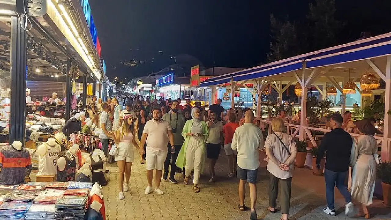 Dünya'nın en güzel tatil yerlerinden biri olan Ölüdeniz 'de 9 günlük bayram tatilinin 2. gününde yerli ve yabancı turistler ile doldu taştı. Çok kalabalık olmasına rağmen Ölüdeniz çarşısı esnafı kalabalığın işlerine yeterince yansımadığını ifade etti.