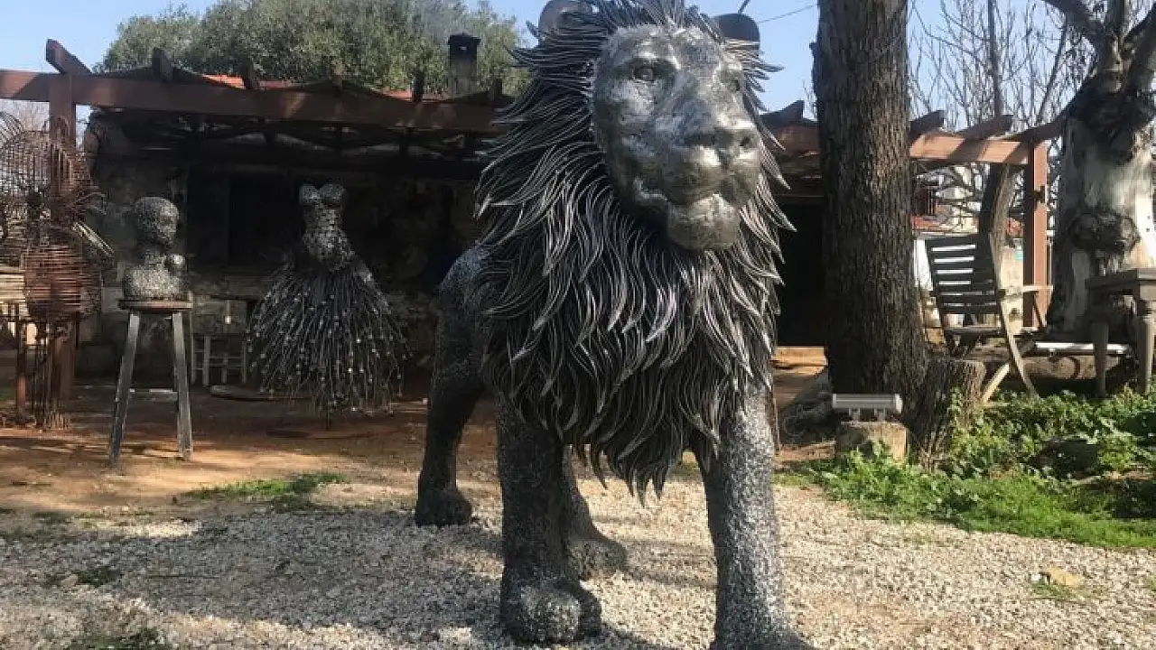 Muğla'nın Bodrum ilçesinde atık metal malzemelerden heykeller yapan Metalart Atölyesi, bu kez bir aslan heykeli yaptı. Heykeli, Galatasaray-Barcelona maçı gününde tamamlayan atölye çalışanları, 1 tonluk heykelin Galatasaray'a uğurlu geleceğine inandıklarını söylediler.