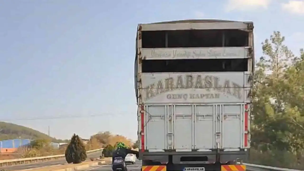 Aydın-Muğla D-550 Karayolu’nda bir kamyonun arkasına tutunarak giden bisikletli görenleri şaşkına çevirdi. Trafiğin yoğun olduğu saatlerde Aydın istikametinden Muğla istikametine seyir halinde olan kamyonun arkasında bisikletiyle ilerleyen sürücü, adeta canını hiçe sayarak kazaya davetiye çıkardı. Bu şekilde kilometrelerce giden şahsın tehlikeli yolculuğu bir aracın sürücüsü tarafından cep telefonu kamerasıyla saniye saniye kaydedildi. Görüntülerde otomobilin hız kadranının 70 ile 80 kilometre arasında değiştiği ve bisikletlinin kamyonun arkasına tutunarak ilerlediği görülüyor.