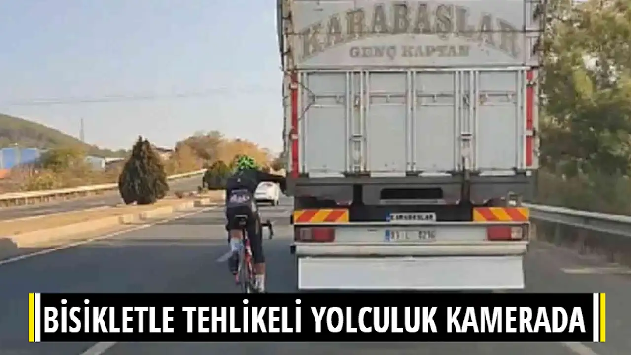 Aydın-Muğla karayolunda bir kamyonun arkasına tutunarak hızla ilerlemeye çalışan bisiklet sürücüsünün tehlikeli yolculuğu amatör kameraya yansıdı.