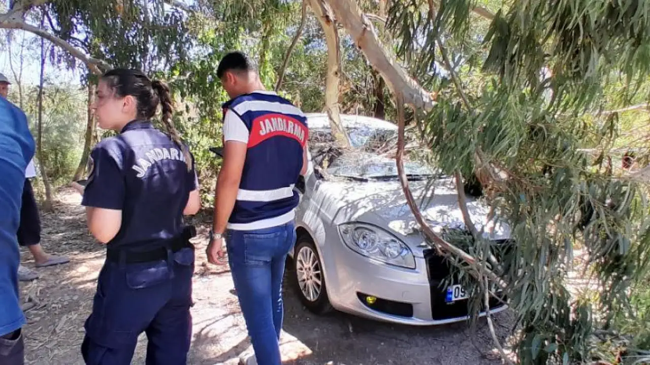 Jandarma, itfaiye ve Ula Belediyesi’ni arayan vatandaş kırılan Okaliptüs dalının kesilmesini ve tutanak tutulmasını istedi. Olay yerine gelen Ula Belediye personeli kesme motoru ile kırılması sonucu aracın üzerine düşen dalı temizlerken dal yerinden koptu ve kaportaya da zarar verdi.