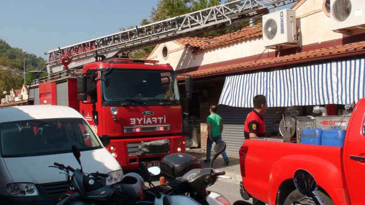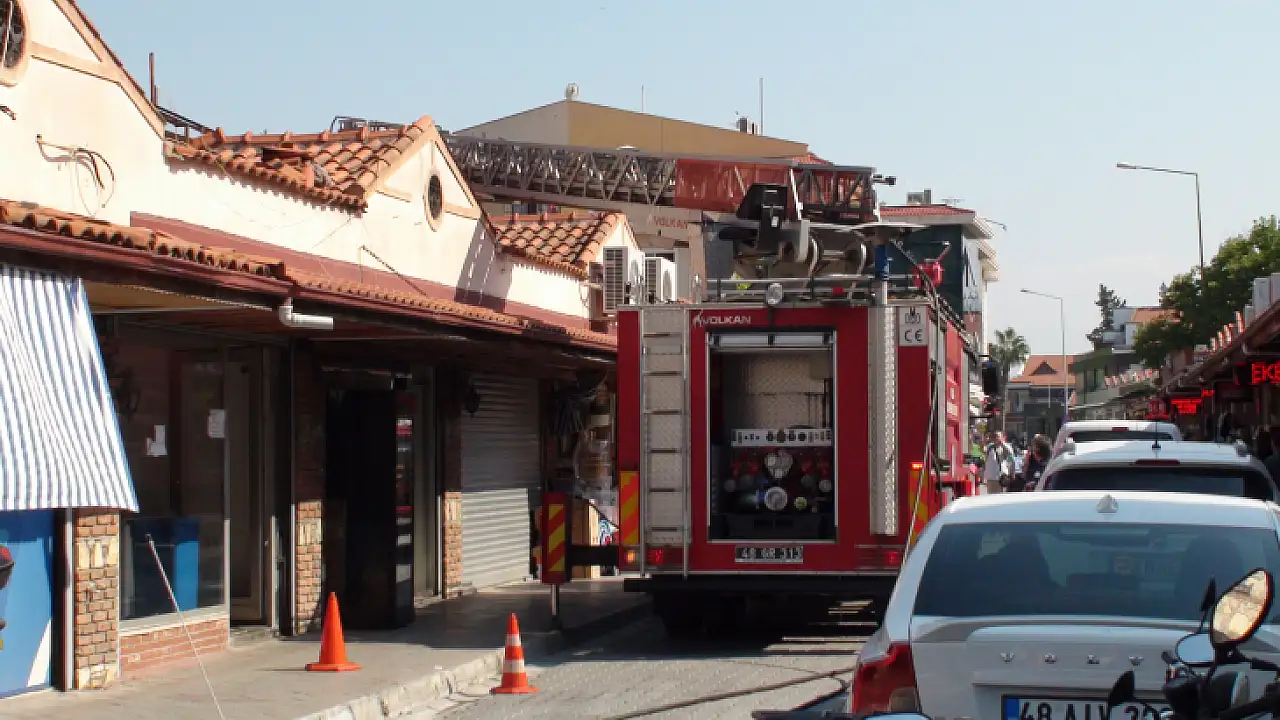 Fethiye Balık Pazarı'nda öğle saatlerinde bir restoranın bacasında yangın meydana geldi.