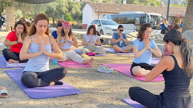 Milas Belediyesi Gençlik ve Spor Hizmetleri Müdürlüğü bünyesinde kadınlara yönelik açılan yoga kursuna katılan kursiyerler, son antrenmanlarını Milas'ın Kapıkırı Mahallesi'nde gerçekleştirdi.