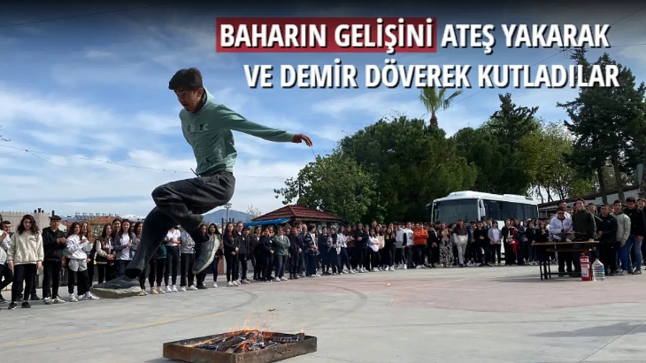 Fethiye Şehit Yüzbaşı Özgür Özekin Mesleki ve Teknik Anadolu Lisesi idarecileri, öğretmenleri ve öğrencileri Bahar (Nevruz) Bayramı'nı okul bahçesinde ateş yakarak ve demir döverek kutladılar.