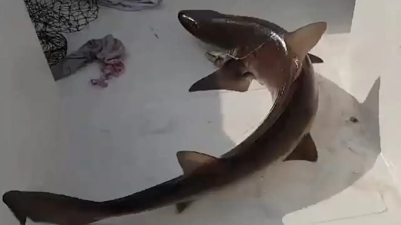 Muğla'nın Datça ilçesi açıklarında avlanan balıkçıların ağına 25 kilogramlık köpekbalığı takıldı.