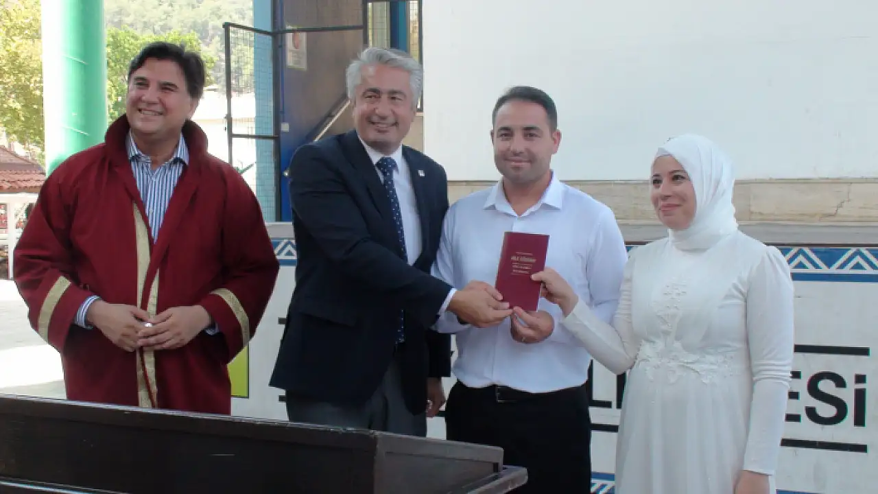 Yadigar Kıloğlu ve Hamdi Yavuz çifti Fethiye Özer Olgun Kültür Merkezi’nde düzenlenen nikah töreniyle hayatlarını birleştirdi. Genç çifti bu özel günlerinde Fethiye Belediye Başkanı Alim Karaca yalnız bırakmadı. Çiftin nikâhını kıyan Karaca, bir ömür boyu mutluluklar diledi. Aynı zamanda nikaha katılan Cumhuriyet Halk Partisi Muğla İl Başkanı Hüseyin Erol’da iyi dileklerini genç çifte iletti.