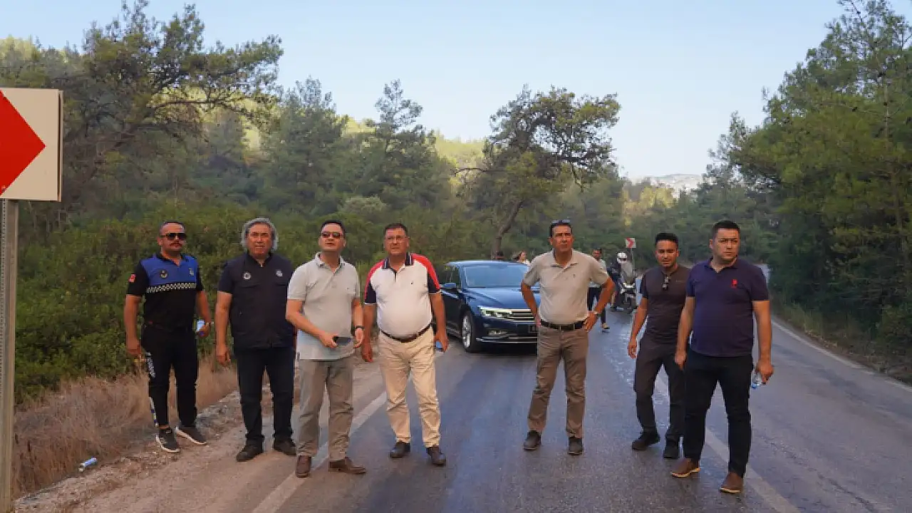 Milas'ın Boğaziçi Mahallesi sınırlarında başlayan orman yangını devam ederken, Milas Belediye Başkanı Muhammet Tokat yangın bölgesine giderek incelemelerde bulundu.