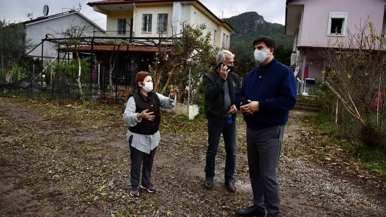 Fethiye Belediye Başkanı Alim Karaca, İnlice Mahallesinde hortumzedeleri ziyaret edip, geçmiş olsun dileklerinde bulunurken, belediye temizlik işleri ekipleri de yıkılan ağaçları kaldırıp vatandaşların yardımına koştu.
