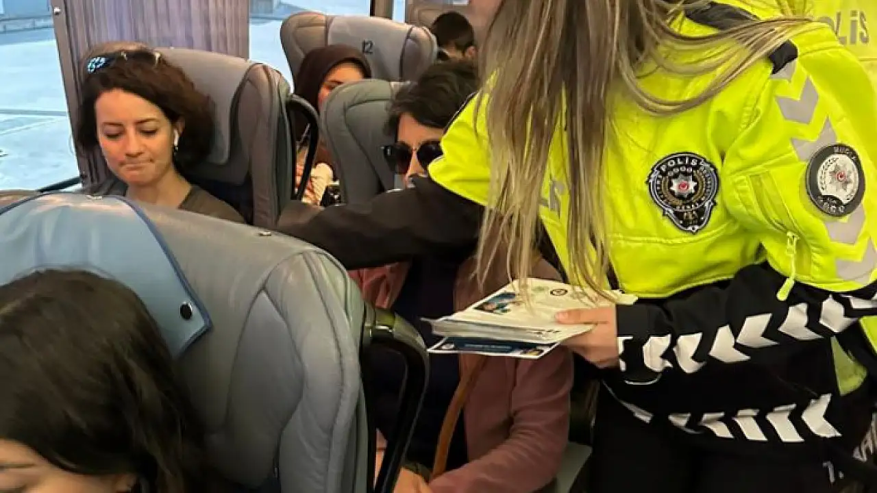 Trafik tedbirleri çerçevesinde Muğla Emniyet Müdürlüğü Trafik Tescil ve Denetleme Şube Müdürlüğü ekipleri şehirlerarası terminallere giriş-çıkış yapan bütün otobüs ve şoförleri üzerinde trafik denetimi yaptı. Otobüslerin terminal çıkışı öncesinde içindeki yolculara otobüslerin karıştığı trafik kazalarında araçların devrilmesi ve araçtan dışarı savrulmalarının önlenmesi amacıyla emniyet kemeri kullanmalarının yasal zorunluluk olduğu hatırlatılarak, “Emniyet kemeri ile güvenli trafik bir hareketine bakar. Bu yolda sana çok güveniyoruz” uyarısı yolculara aktarılırken, emniyet kemeri kontrolleri gerçekleştirildi.