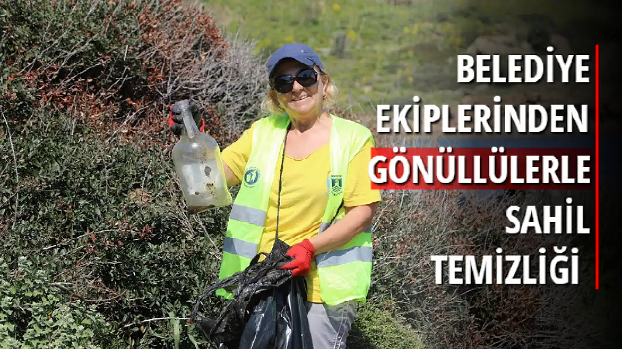 BELEDİYE EKİPLERİNDEN GÖNÜLLÜLERLE SAHİL TEMİZLİĞİ