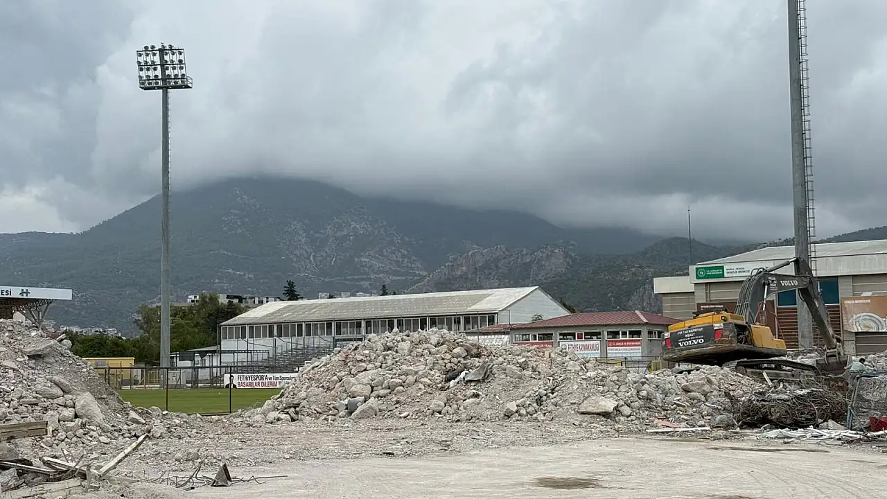 Fethiye İlçe Stadyumu'nda deprem raporu olumsuz sonuçlanmasından dolayı kullanıma kapatılan betonarme tribünün yıkım işlemi sona erdi.