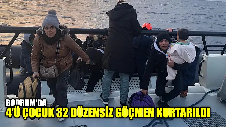 Muğla'nın Bodrum ilçesi açıklarında 4'ü çocuk 32 düzensiz göçmen kurtarıldı.