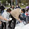 Bir anda karın başına üşüşen çocuklar ve aileleri bir yandan fotoğraf çektirirken diğer yandan ilk kez kar görmenin heyecanını yaşadı.