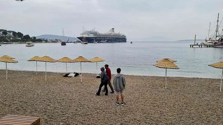 Muğla'nın Bodrum ilçesinde, sezonun üçüncü kruvaziyer gemisi 'Mein Schift Herz' bin 233 yolcuyla geldi. İlçe merkezinde bayram yoğunluğu ile birlikte yoğunluk yaşanırken yağışlı hava nedeniyle sahiller boş kaldı, günlük tur tekneleri açılamadı.
