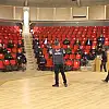 Eğitimde afet esnasında hayati önem taşıyan “çök- kapan-tutun” hareketi de uygulamalı olarak yapıldı.