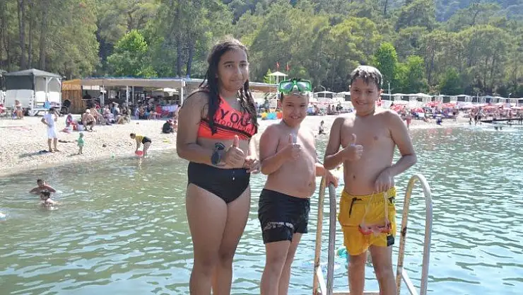 Fethiye'nin gözde plajlarından Büyük Samanlık Plajı Kurban Bayramında tatilcilerle dolup taşıyor.