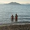 Hava sıcaklıkları düşmeye başlamasına rağmen Fethiye'de güneşli günler yüz güldürüyor. Çalış Plajı'nda yerli ve yabancı bazı tatilciler hâlâ denize girip güneşlenmeye devam ediyor.