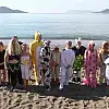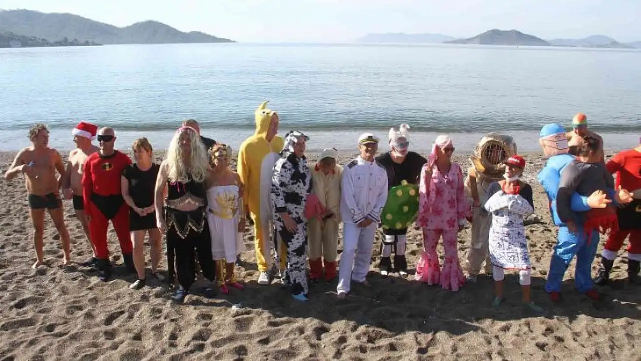 Muğla'nın Fethiye ilçesinde yaşayan çoğunluğu İngilizlerden oluşan yerleşik yabancı vatandaşlar, yeni yılın ilk gününde yardıma muhtaç çocuklar ve sokak hayvanları için Çalış Plajı'nda değişik kostümlerle denize girdi.
