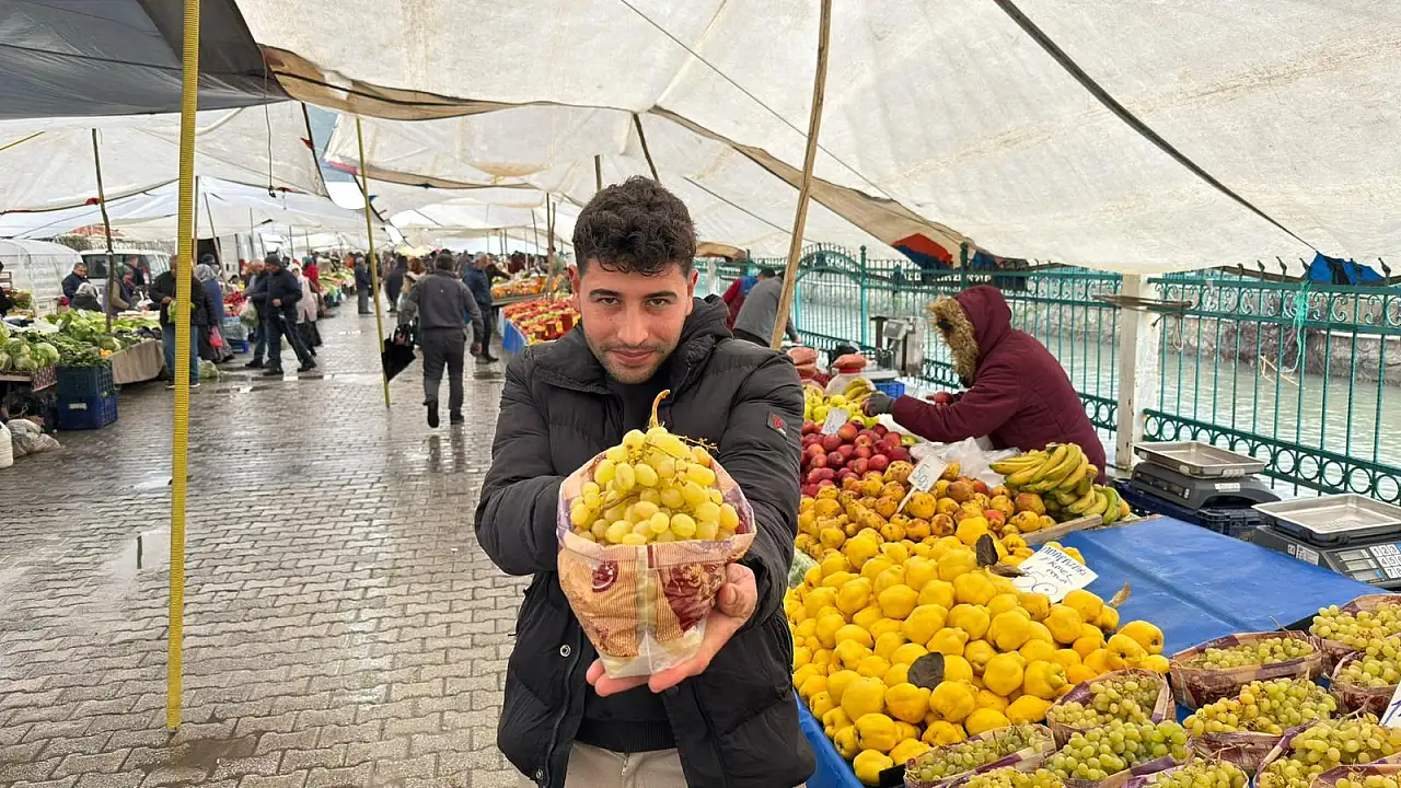 Pazardaki güncel fiyatlara da değinen Kocakahya, “Bu hafta muz 80 liradan başladı. Kivi boyuna göre değişiyor; 150 liraya da var, 200 liraya da. Üzüm 100 lira olan da var, 150 lira olan da” ifadelerini kullandı.