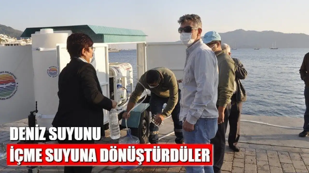 Muğla'nın Marmaris ilçesinde afet zamanlarında kullanılmak üzere özel bir firma ve turizm işletmesi tarafından Marmaris Belediyesi'ne kazandırılan Mobil Arıtma Cihazı'nın ilk denemesi yapıldı. Oluşturulan sistemle deniz suyu, içme suyuna dönüştürüldü.