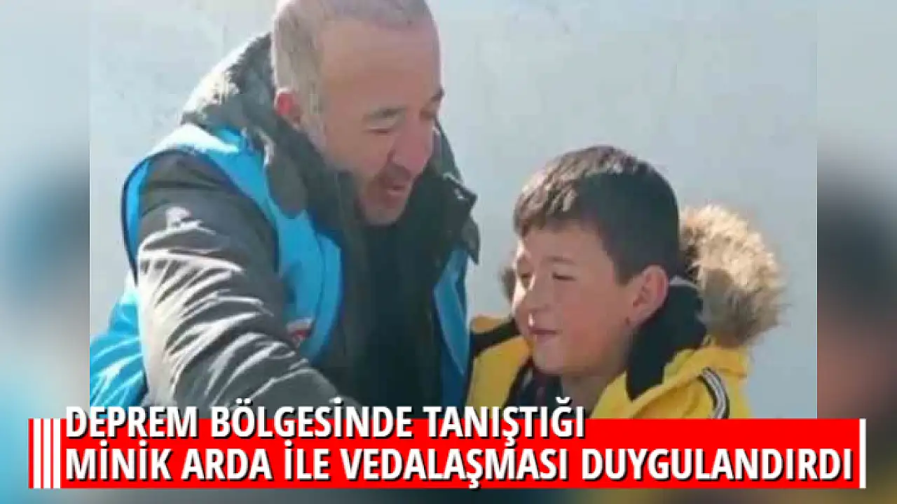Kahramanmaraş Depremi'nin yaralarını sarmak için Muğla İl Müftülüğü tarafından bölgeye gönderilen gönüllü personel Dilaver Çakır'ın, deprem bölgesinde tanıştığı minik Arda ile vedalaşması, duygulu anlara sahne oldu. Minik Arda'yı oğlu gibi sevdiğini ifade eden Çakır 'Sen benim manevi oğlumsun, beni unutma' dedi.