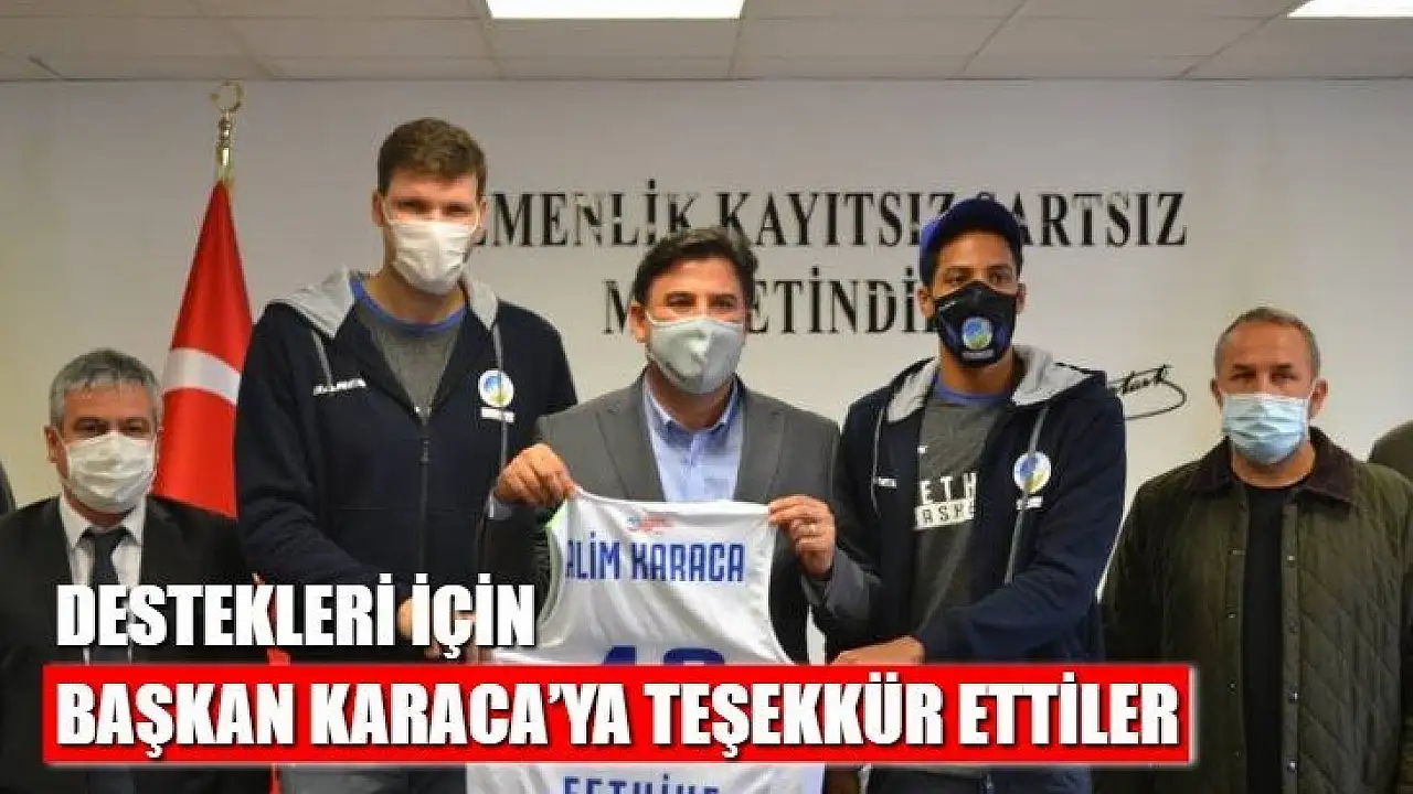 Lokman Hekim Fethiye Belediyespor yöneticileri, teknik heyeti ve sporcuları Fethiye Belediye Başkanı Alim Karaca'yı ziyaret ettiler. Kulüp Başkanı İzzet Durak, ziyarette Başkan Karaca'ya isminin yazılı olduğu forma hediye etti.