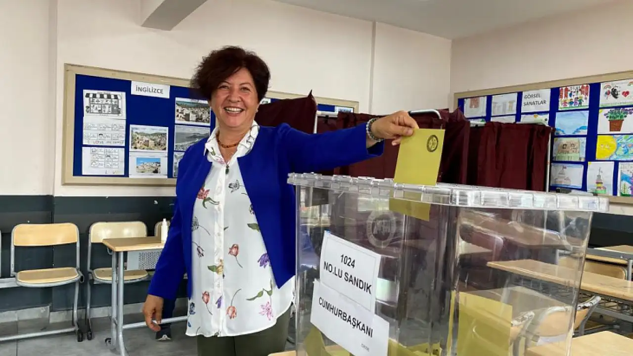 Fethiye Deva Partisi İlçe Başkanı Saniye Kulaç, Yusuf İzzet Gökçe İlkokulu'nda oyunu kullandı.