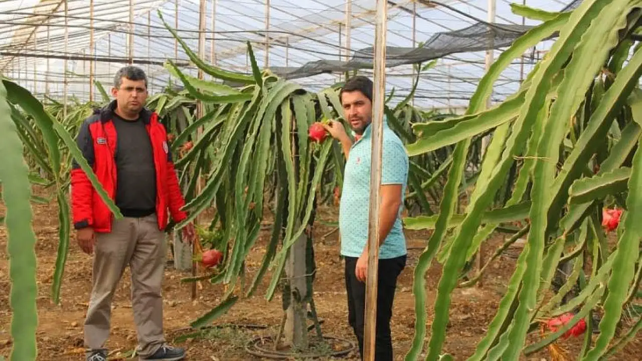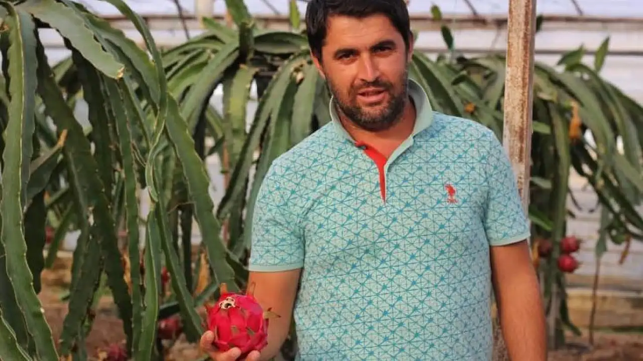 Eldirek Mahallesi’nde çiftçiler ejder meyvesi üretmeye başladı.Üretim alanı 20.00 metrekareyi aşan ejder meyvesinin domates ve salatalık gibi sebzelerden daha az maliyetle üretildiği biliniyor.Eldirek Mahallesi’nde domates ve salatalık gibi sebzeleri üretmekten vazgeçip ejder meyvesi üreten çiftçilerden biri olan Kenan Türkoğlu çevresine de örnek bir çiftçi oluyor.Kenan Türkoğlu diğer çiftçilere örnek olarak mahallesinde ejder meyvesi üretilmesine örnek oldu.