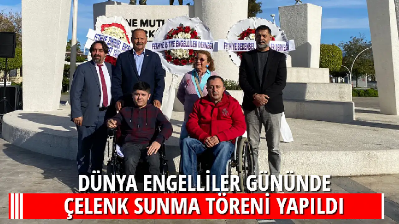 3 Aralık Dünya Engelliler Günü kapsamında Beşkaza Meydanı Atatürk Anıtı önünde çelenk sunma töreni gerçekleştirildi. Gerçekleştirilen programa Fethiye Belediye Başkan Yardımcısı Oğuz Bolelli, Emniyet Müdürü Kayhan Dadaşoğlu, siyasi parti temsilcileri, özel eğitim kurumları yöneticileri, dernek başkanları ve vatandaşlar katıldı. Programda ilk olarak engellilere yönelik faaliyet gösteren sivil toplum kuruluşlarının çelenkleri sunuldu. Ardından Fethiye Bandosu eşliğinde İstiklal Marşı okundu. Program hatıra fotoğrafı çekimi ile sona erdi.