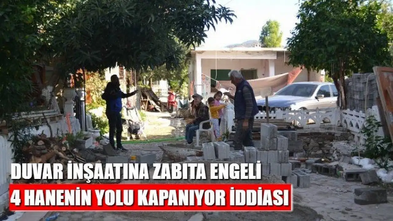 Fethiye'nin Foça Mahallesi 1103 Sokak'ta ikamet eden 4 ailenin evine giden yola bir kişi tarafından duvar çekilmeye çalışıldığı iddia edildi. Konuyla ilgili vatandaşların Fethiye İlçe Emniyet Müdürlüğü ve Fethiye Belediyesi Zabıta ekiplerini aradığı bildirildi. Yapılan incelemeler sonucunda 42 yıldır kullanılan yola duvar örme çalışmasının, Zabıta tarafından engellendiği öğrenildi.